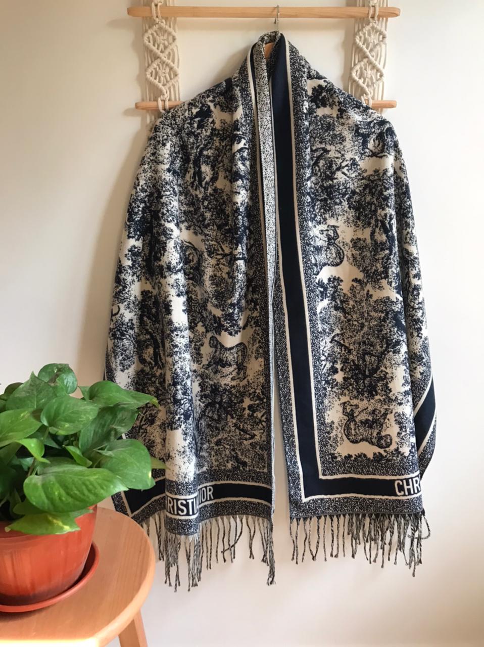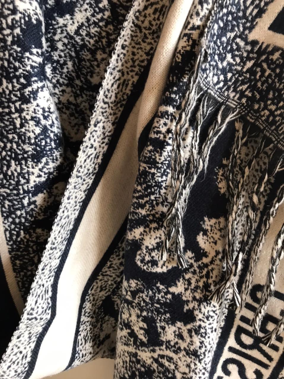 شال صوف دبل فيس بلون كحلي × أوف وايت 🤍