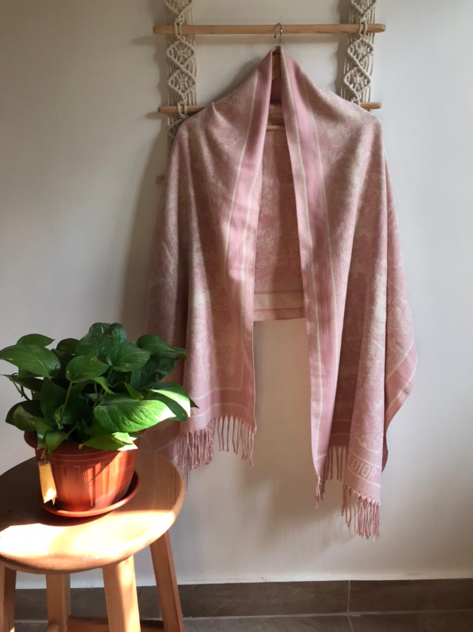 شال صوف دبل فيس بينك × أوف وايت 🤍
