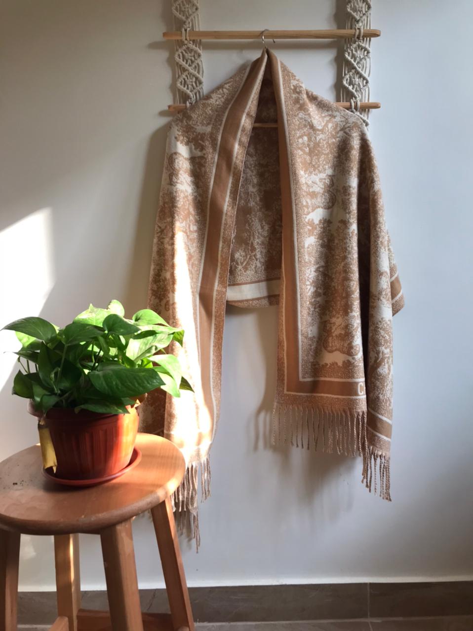 شال صوف دبل فيس بلون بنى× لاتيه 🤍
