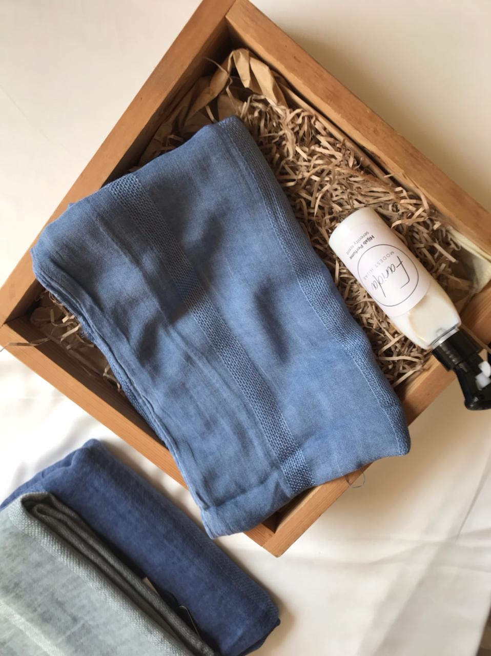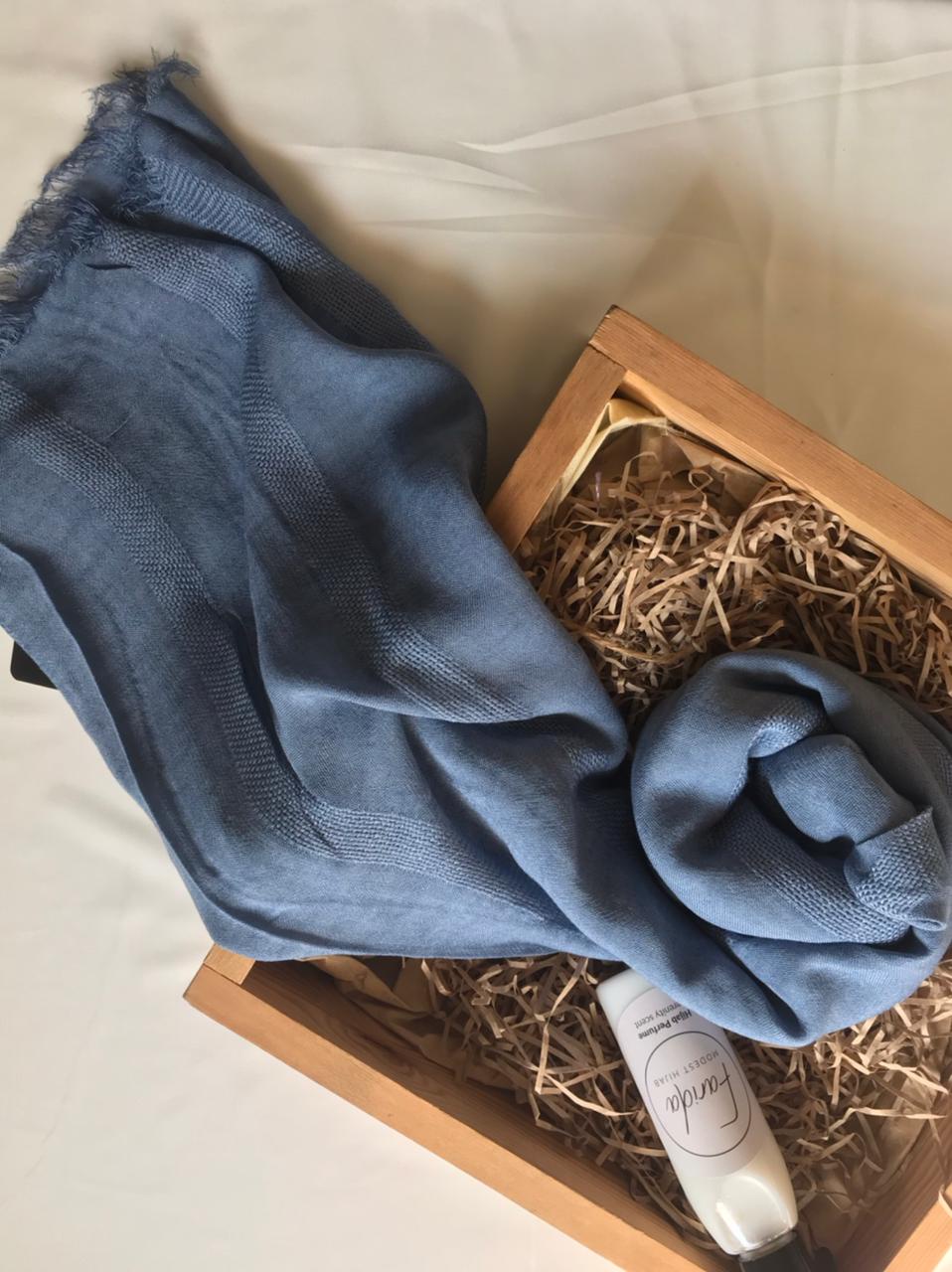 طرحة كتان بخطوط مضلعة على طول الطرحة.